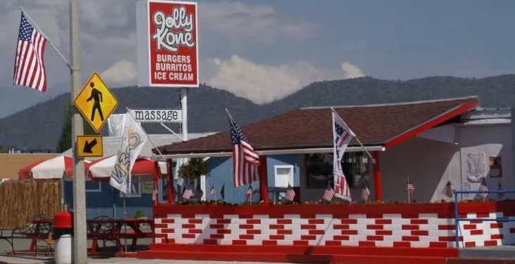 Jolly Kone offers hamburgers, cheeseburgers, burritos, fries, ice cream, malts and much more!